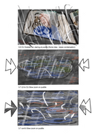 Full colour concept art storyboards, line drawings and monochrome roughs.